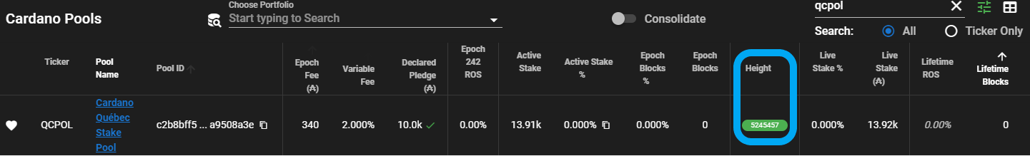 The following figure shows the green badge that PoolTool displays next to your stake pool when your node is fully synchronized with the blockchain (image credit to QCPOL):
