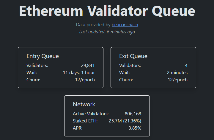 In the below example, the wait time was approximately 11 days, 1 hour until a new validator became active.